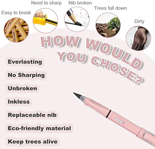 SAVE YOUR MONEY- Limitless writing everlasting pencil, compressed nib, can substitute greater than 100 conventional pencils, no pencil shavings, so it’s not straightforward to get soiled fingers.