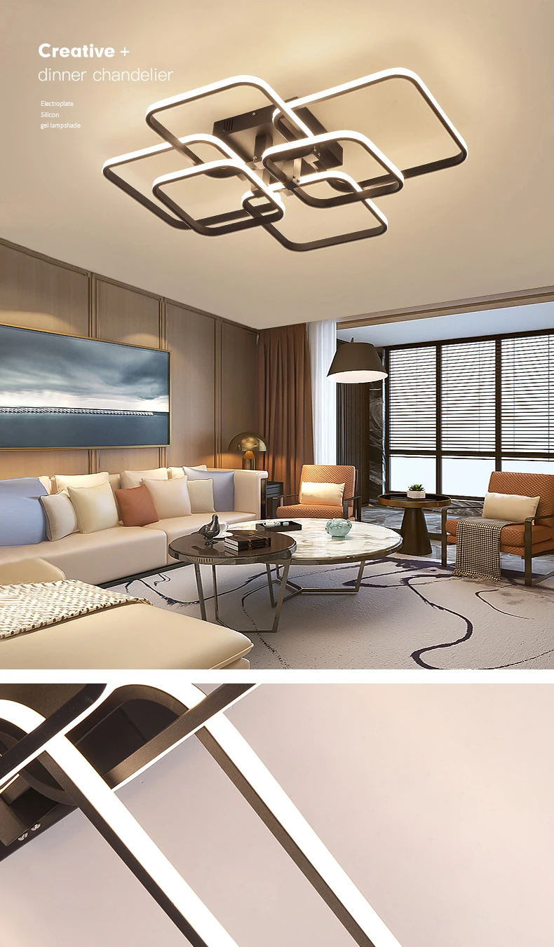 Specification: Sq. Circel Rings Chandelier For Residing Room Bed room House AC85-265V Fashionable Led Ceiling Chandelier Lamp Fixtures Free Delivery