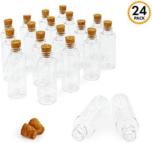 Srenta Pack of 24 Clear Plastic Sand Artwork Bottles with Cork Stoppers, 2 ozCork Bottle, Plastic Jars with Cork, Mini Vial Potion Bottles for DIY Arts & Crafts, Get together Favors, Want & Message in a Bottle