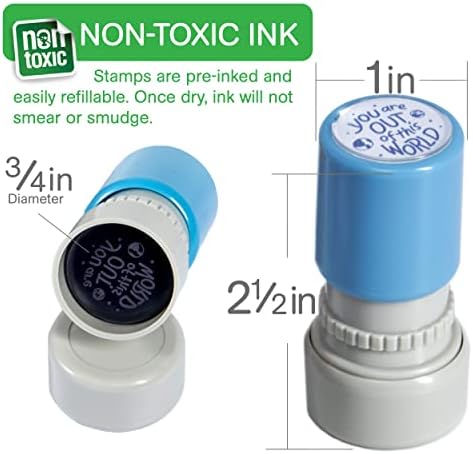 Pre-inked Flash Stamps – Cute top quality, lovely, vibrant, and enjoyable stamps: Tremendous Duper, Preserve Going, Good Job!, You Are Out Of This World, You are Doing Nice, Good