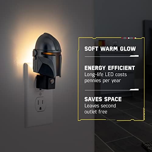 Star Wars The Mandalorian Helmet LED Night time Mild, Plug-in, Nightfall to Daybreak, Mild-Sensing, Best for Children Room, Bed room, Workplace, Wall Decor, Presents, 53232