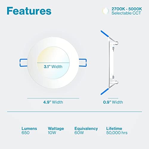 ✅ SELECTABLE CCT – Select shade temperature (2700K, 3000K, 3500K, 4000K, 5000K) to tune your slim downlight to your most well-liked shade setting. Straightforward CCT choice with the slider swap on again of the junction field. Merely check out the assorted shade temperatures to go well with the appear and feel of your room, then lock in your choice throughout the set up. ✅ DIMMABLE – Seamless dimming capabilities (100%-10%) to suit any temper or decor. Our slim downlights give off sunlight-like high quality.