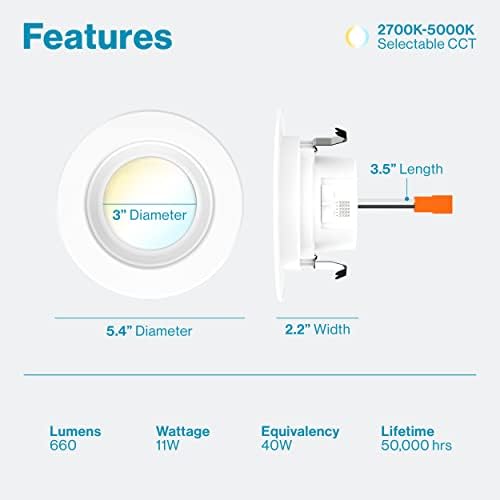 ✅ SELECTABLE CCT – Select shade temperature (2700K, 3000K, 3500K, 4000K, 5000K) to tune your 4″ Retrofit downlight to your most well-liked shade setting. Straightforward CCT choice with the slider change on again. Throughout set up, attempt varied shade temperatures to alter the sunshine high quality then lock in your choice. ✅ DIMMABLE – Seamless dimming capabilities (100%-10%) to suit any temper or décor.