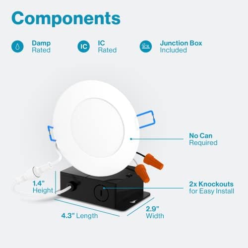 Sunco Lighting 4 Inch Extremely Skinny LED Recessed Ceiling Lights Slim, 5000K Daylight, Dimmable 10W=60W, 650 LM, Clean Trim Damp Rated, Canless Wafer Skinny with Junction Field – ETL & Power Star 6 Pack