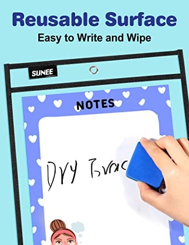 Be the first to review “SUNEE 50 Packs Outsized Reusable Dry Erase Pocket Sleeves with 3 Rings, Black 10×14 Ticket Holders, Clear Plastic Sheet Protectors, Instructor College Classroom Provides”