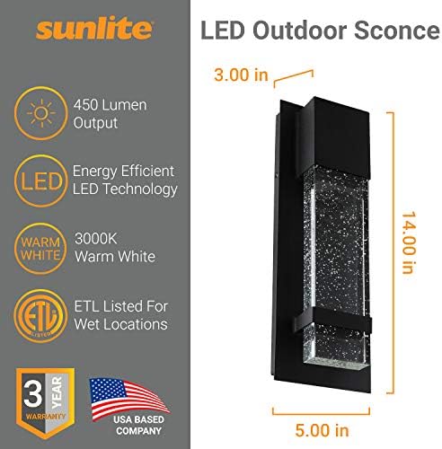 Sunlite 81169-SU LED Wall Sconce with Rain Drop Bubble Glass Panel, 13.75″ Tall, 5″ Huge, 9 Watts, Indoor/Out of doors, Black End, ADA Compliant, 30K-Heat White