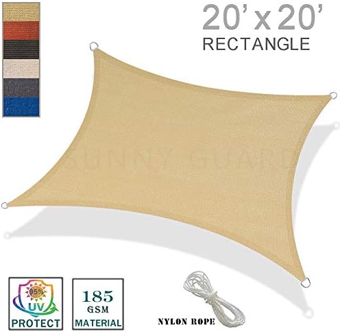SUNNY GUARD 20′ x 20′ Sand Sq. Solar Shade Sail UV Block for Outside Patio Backyard