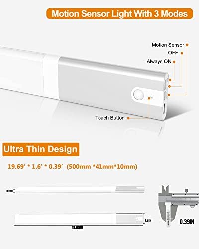 Svarog 19.49″/50cm Beneath Cupboard Lights, 340 Lumens Movement Sensor Closet Lights, Rechargeable Dimming LED Night time Mild for Closet, Kirchen, Bed room, Cupboard, Cabinet,Wardrobe