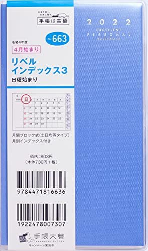 Takahashi No. 663 Liberty Month-to-month Planner, Begins April 2022, Index 3, Blue (English Language Not Assured)