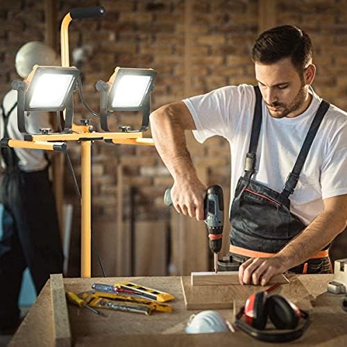 Tangkula 10000 Lumen Twin-Head LED Work Mild, w/Iron Telescopic Tripod Stand, Waterproof Transportable Work Web site Lighting, Removable & Rotatable 120V Work Mild, IP65, w/ 9′ Twine (10000 Lumen)