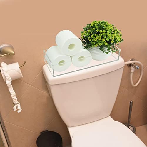 Tasybox Bathroom Paper Holder with Storage, Acrylic Bathroom Tank Tray, Clear Rest room Trays with Handles Self-importance Tray for Dwelling Decor