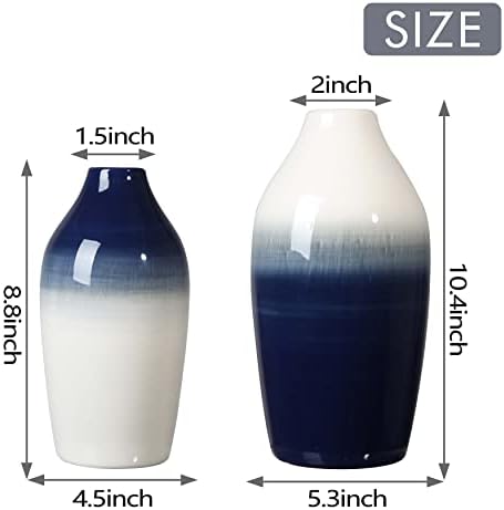 TERESA’S COLLECTIONS Trendy Blue and White Ceramic Vase for House Decor, Navy Blue Ornamental Vase Set of two, Glazed Vase for Mantel, Dwelling Room, Self, Desk Ornament, 10.4 inch Tall