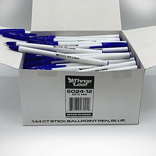 THREE LEAF 144 CT BULK PACK BLUE INK STICK BALL POINT PEN, Medium Level, 1.0mm, Black Ink Pens, Superb Level Clean Writing Pens. For Workplace provides.