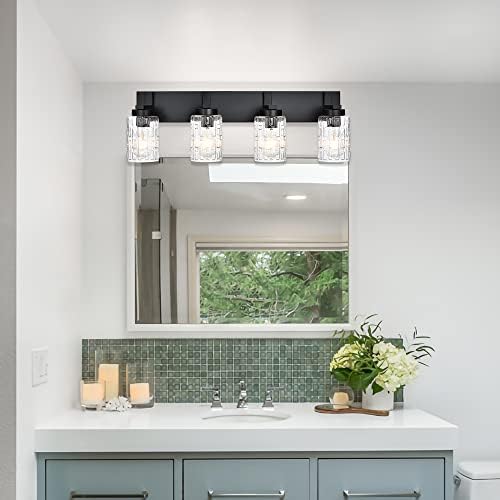 TODOLUZ Rest room Vainness Gentle Over Mirror in Metallic Black End, Wall Mount Lighting Sconce with Seeded Grid Glass for Bed room Kitchen Dressing Desk