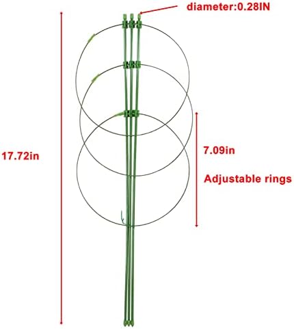 【4 Pack】Every pack incorporates 4 sturdy plant assist cages.Pole Peak: 17.7″, 3 Adjustable Rings Diameter: 7.1″. The dimensions could be adjusted, the right measurement for the precept of plant development.