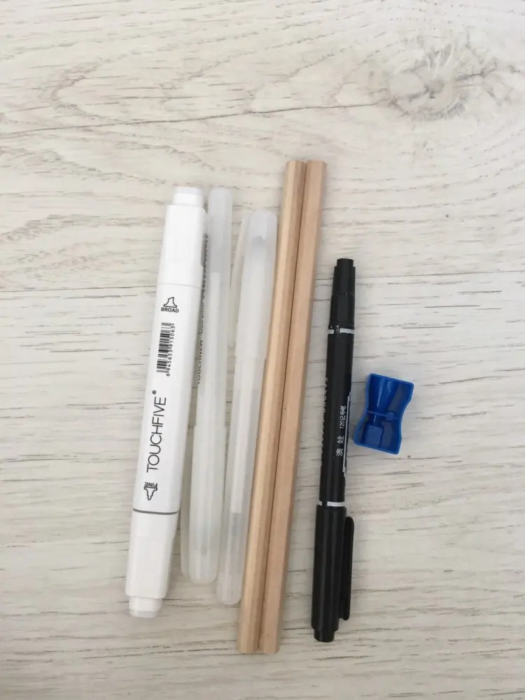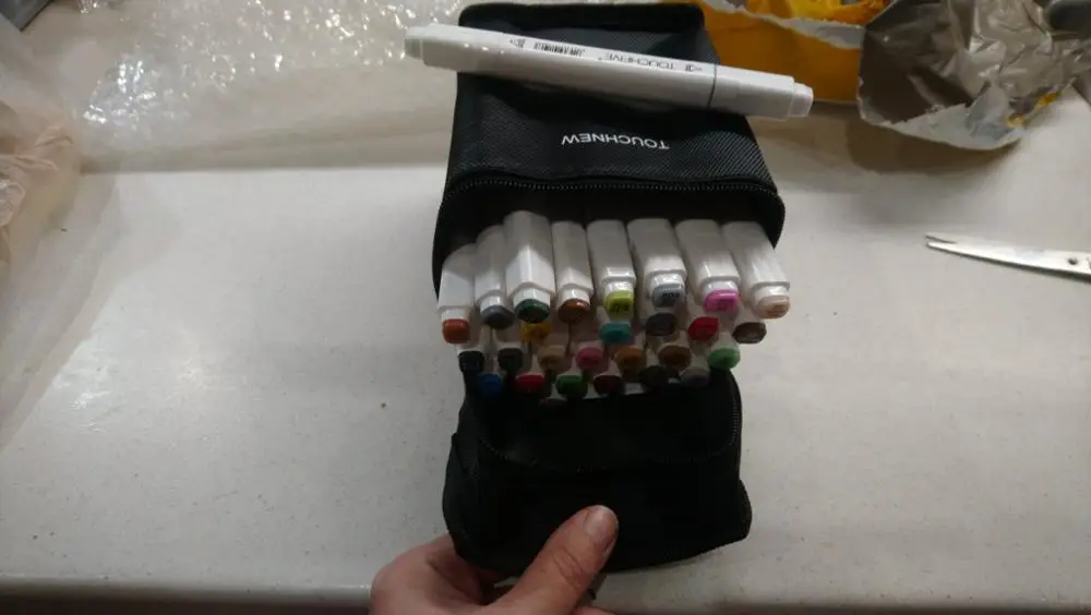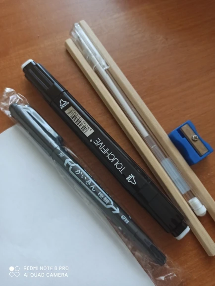 The markers came very quickly! The quality is good, there was no single dried. The only downside is that the black pen leaked, but I wiped it and now she’s writing. The liner came black, but it doesn’t matter in principle. The gift was black pen, white glare pen, two simple pencil, sharpener and liner. In general I am satisfied with the markers! thank the seller!