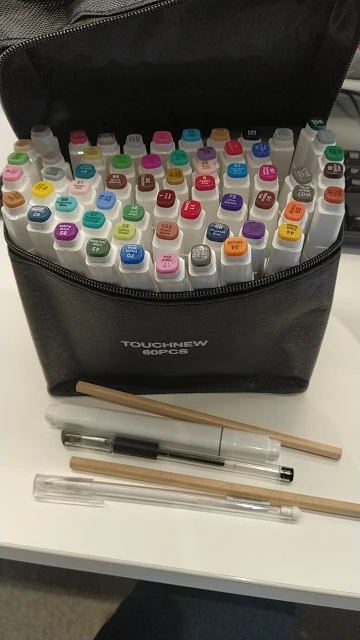 Great set! Also, bonuses are pleasant in the form of simple pencils, liners, sharpeners and a white marker. Delivery to Moscow in one week.