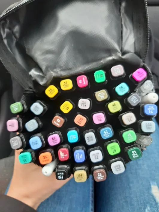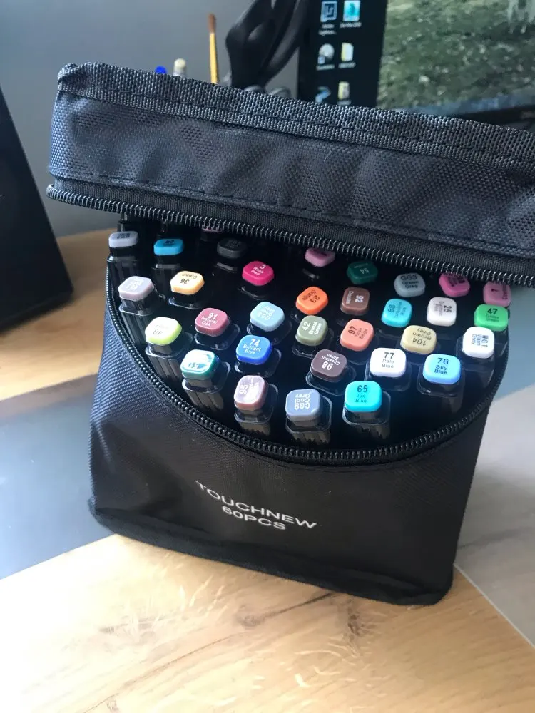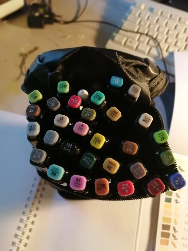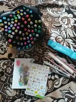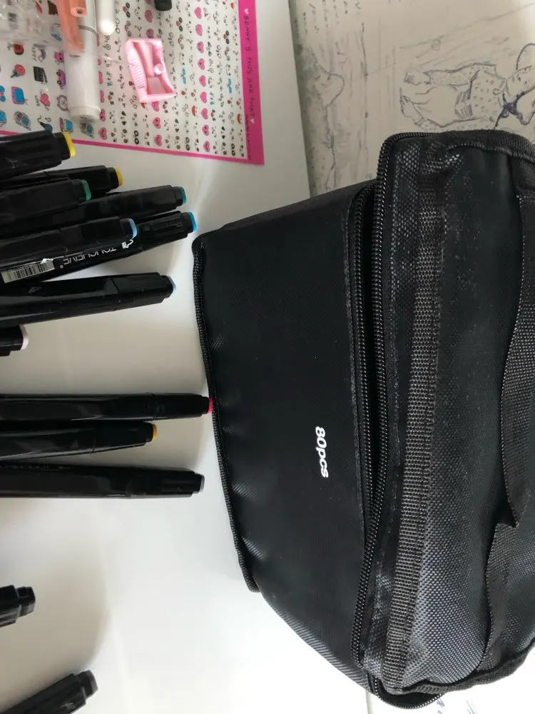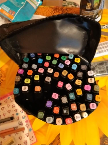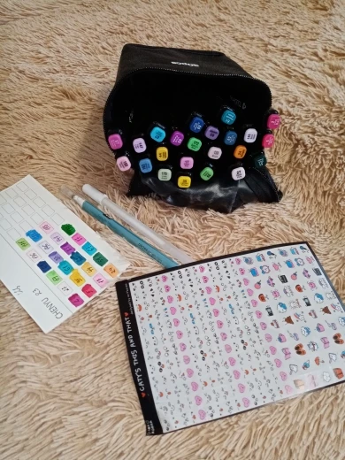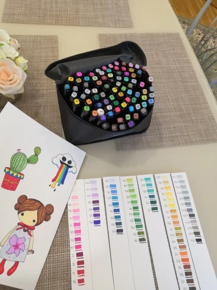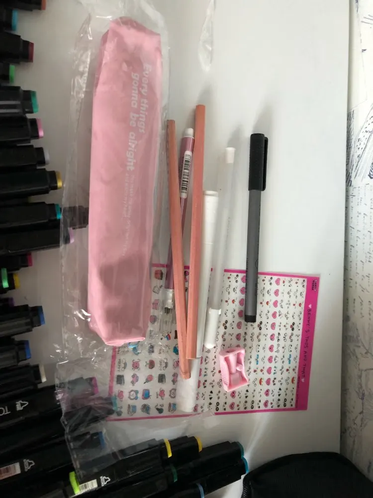 The order came very quickly, it was well packed. The seller put additional cool pens, a white marker, pencils even a sharpener as a gift. And also a postcard and stickers! That’s very nice! All the markers came in a case. Many tried-perfectly draw! I recommend the seller and will still be happy to contact him
