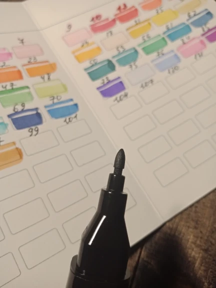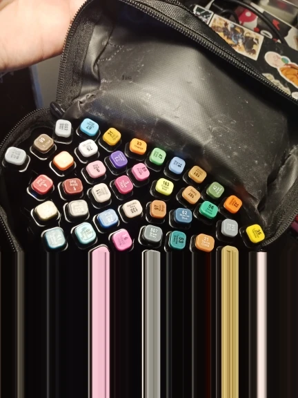 The makers have a late appearance, as if someone used them or beat them, the packing inside is dirty, some numbers are erased, some colors (75,131,135) are almost invisible, more than half come with the outstretched insides, but it can be easily inserted. Open in transit, the brokers did not dry, some markers flow.