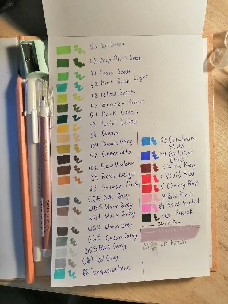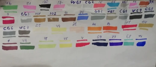 Very good markers. I took it for the first time, for training such a technique. But I can say that everything came very quickly. The order was made by 22.06 and 27.06 already delivered by courier to the house. As a gift were black and white pens, two 2B pencils, a sharpener and stickers.