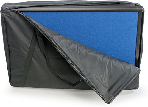 This commerce present presentation board options 4 double sided panels. Every panel is made of froth board and is Velcro-receptive! This moveable commerce present show simply folds up and comes with a carrying bag for cover throughout transporting. On one aspect of the commerce present board is a darkish blue cloth, and on the opposite aspect is gentle blue. Select from a unit both with or with out 3 halogen commerce present show lights! This 4 panel presentation show is sized to suit an 8 foot lengthy desk. Please word that the carrying bag is just not designed to securely accommodate the halogen lights, which comprise fragile elements. Dimensions: 96.5″W x 36.5″H x 0.8″D. Weight: 12 lbs. Gentle wattage: 150w.