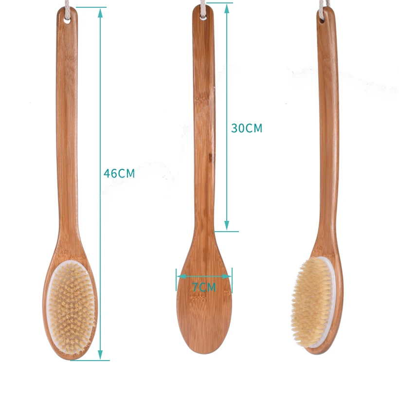 TREESMILE Exfoliating Picket Physique Therapeutic massage Bathe Brush Pure Bristle Tub Brush SPA Girl Man Pores and skin Care Dry Physique Brush D40