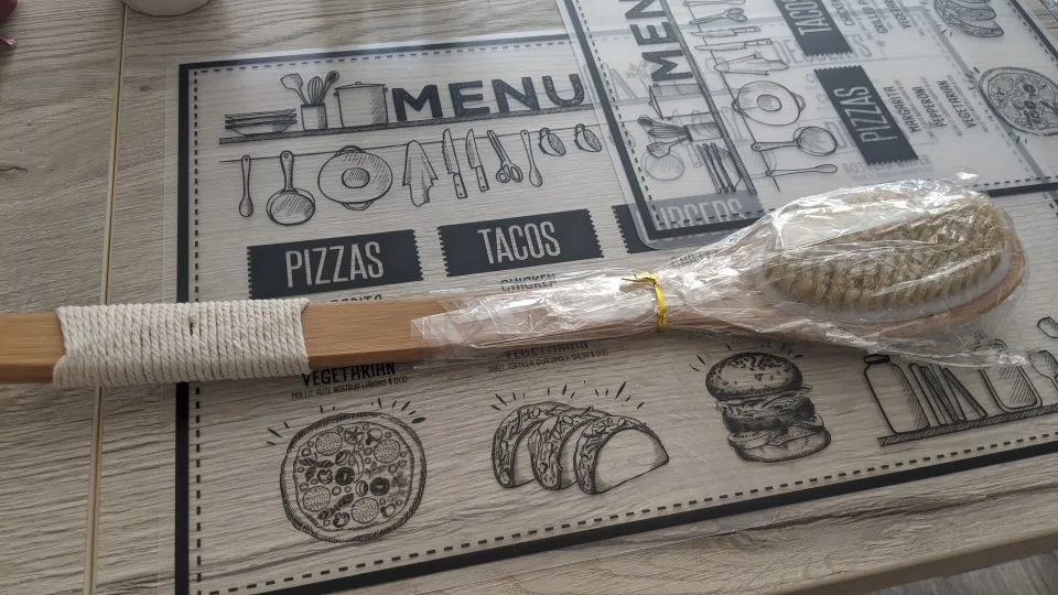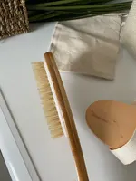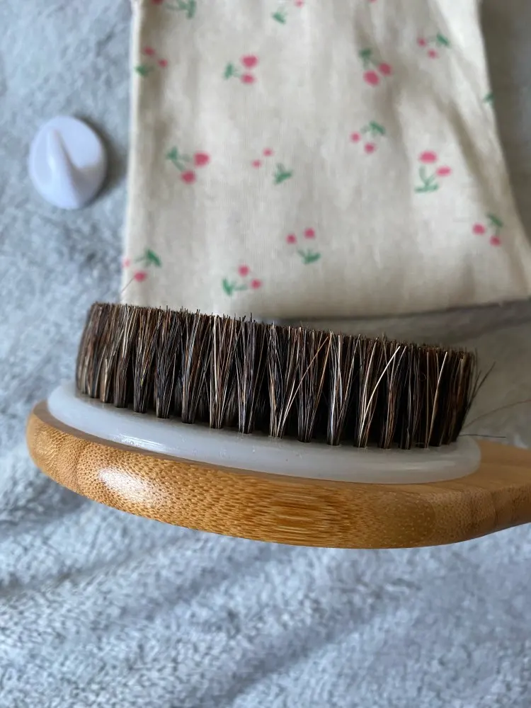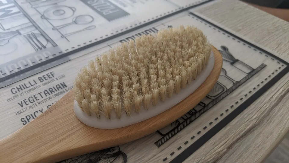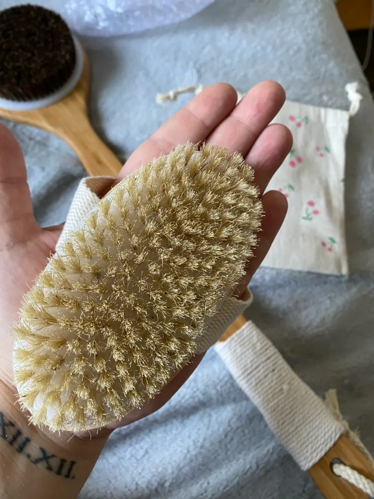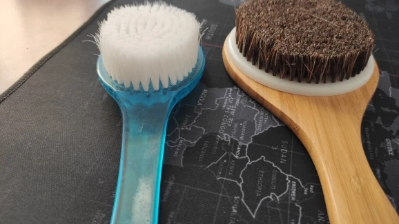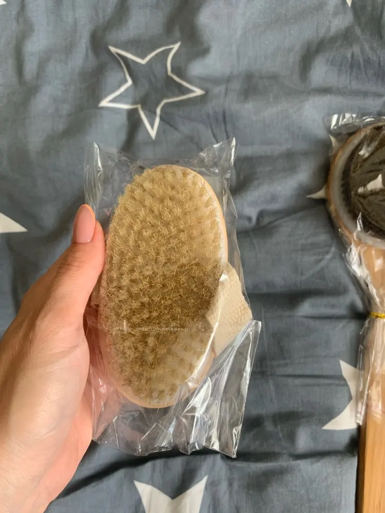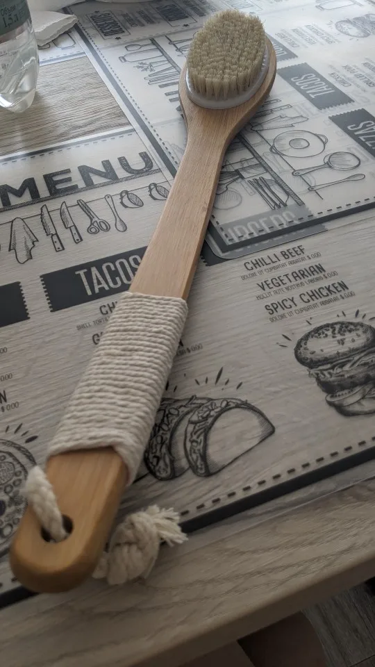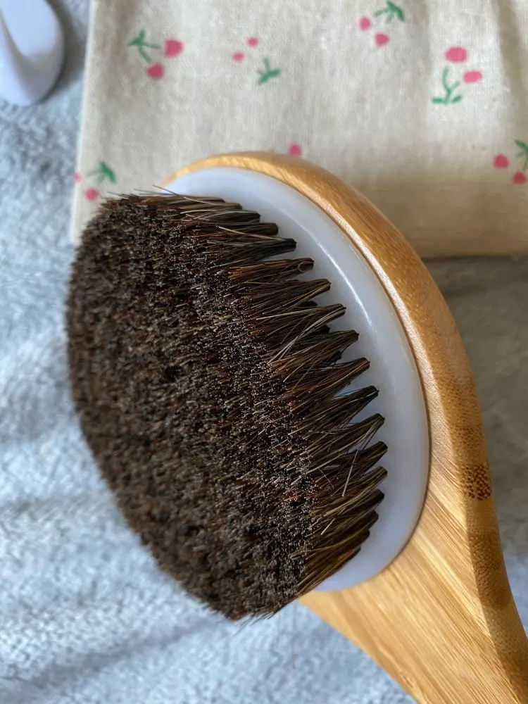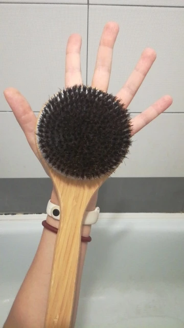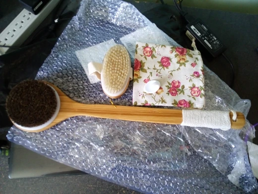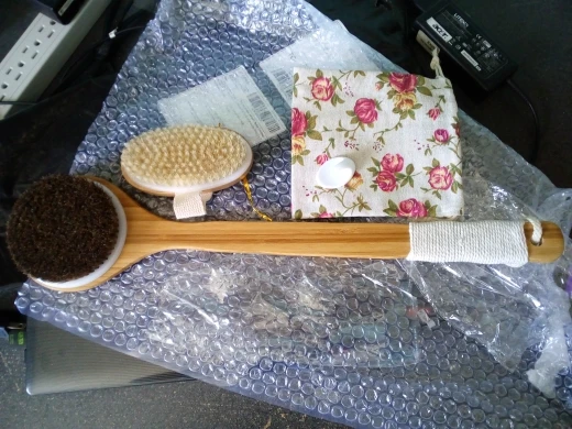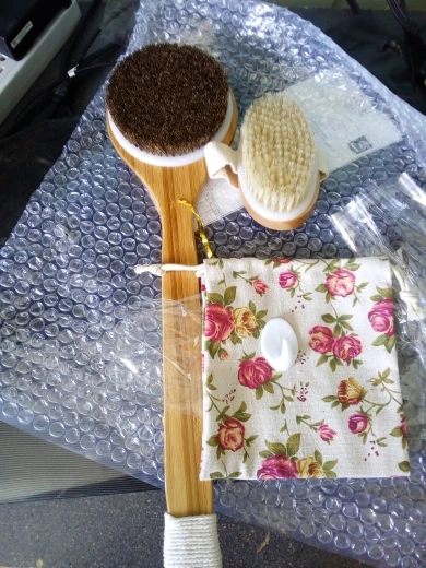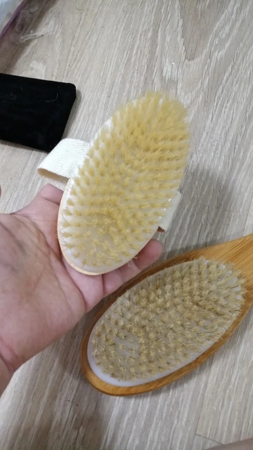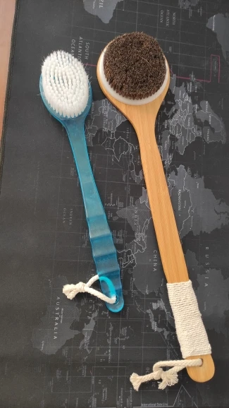 Frankly nice. I chose the 46cms white brush with natural bristle hand brush + cloth bag to save both brush s and small hook for the shower. Wet Shower Brush & Dry Brush.