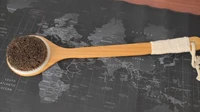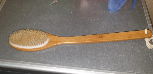 Nice brush. Massages well, the bristles are pretty stiff. Delivery about month.