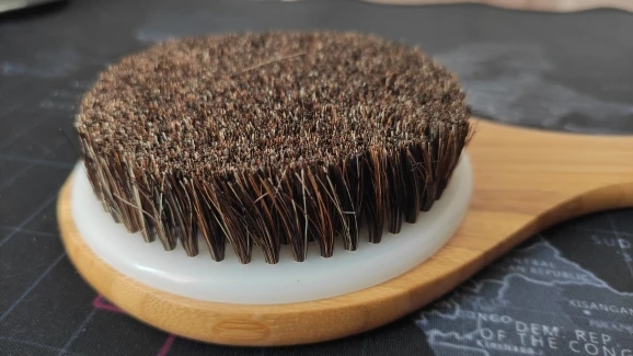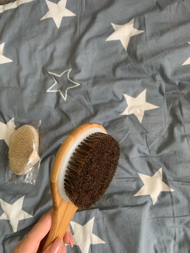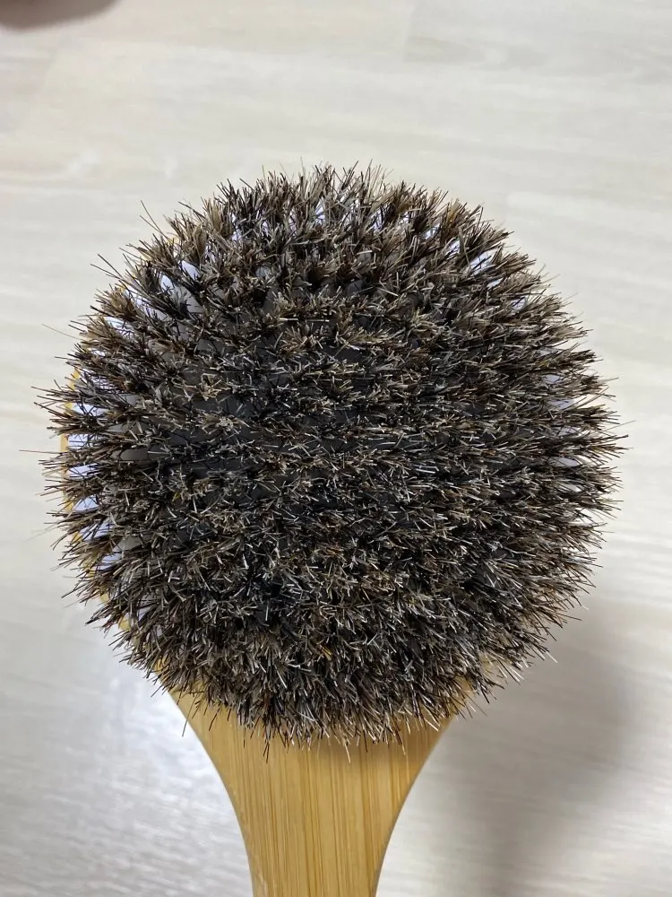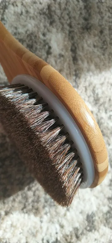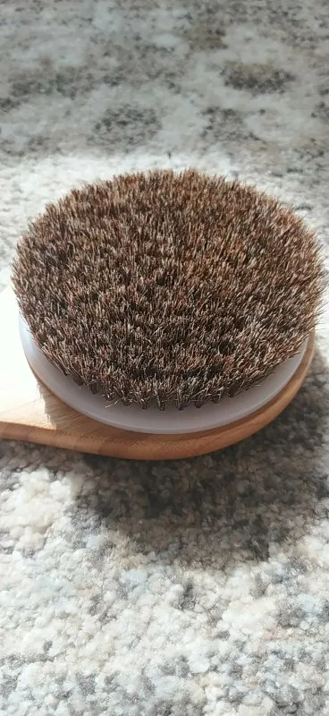 The brush is just fire. The bristle is soft, such a brush will suit beginners or people with tender skin) it is very comfortable in the hand, the pile will not come out. came to the RB for 3 weeks, to communicate with the seller was not necessary)