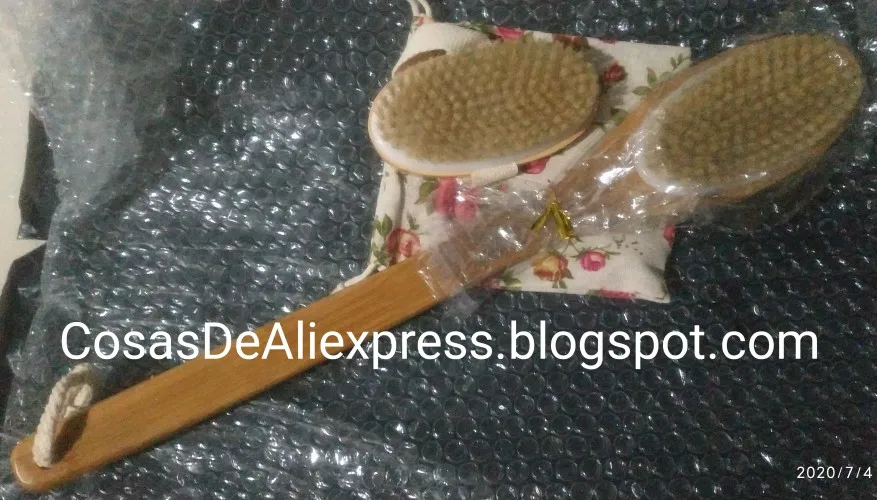 Es tal como se describe el artículo. Llegó sin daño alguno. Venía completo y con un regalo lindo, una bolsa y un sujetador para colgarlo en la pared. Me parece un artículo de buena calidad, me ha resultado muy útil y cómodo. Las cerdas del cepillo largo son suaves, perfecto para piel delicada y la zona de la espalda, el cepillo pequeño es de cerdas más duras y firmes, para el resto del cuerpo. El envío fue tardado, pero lo normal. Buen vendedor, volvería a comprar en esta tienda.