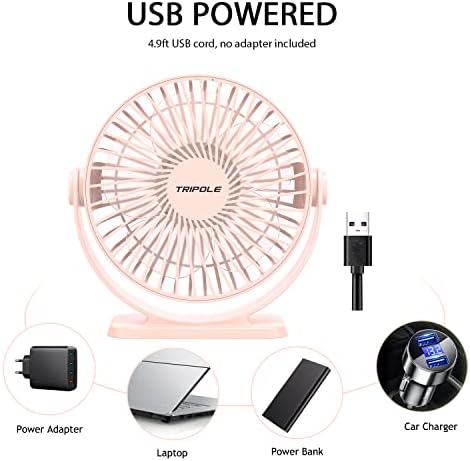 TriPole Mini Desk Fan USB Powered Moveable Fan 3 Speeds Sturdy Airflow Small Fan 360°Rotation Private Fan 5.1 Inch Desk Fan for Dwelling Workplace Bed room Desktop, Pink, 4.9ft Cable