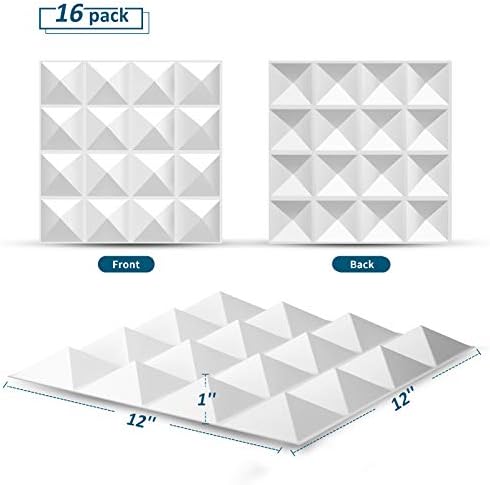 TroyStudio Acoustic Sound Diffuser Panel – 12 X 12 X 1 Inches Pack of 16, Studio Diffuser Wall Artwork Panels, Acoustical Remedies Diffusor for Wall & Ceiling Decor (White)