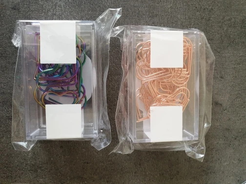 Cute paper clips. Arrived wrapped in bubble wrap and they are in small clear box. The product matches description and arrived fast. Thank you!