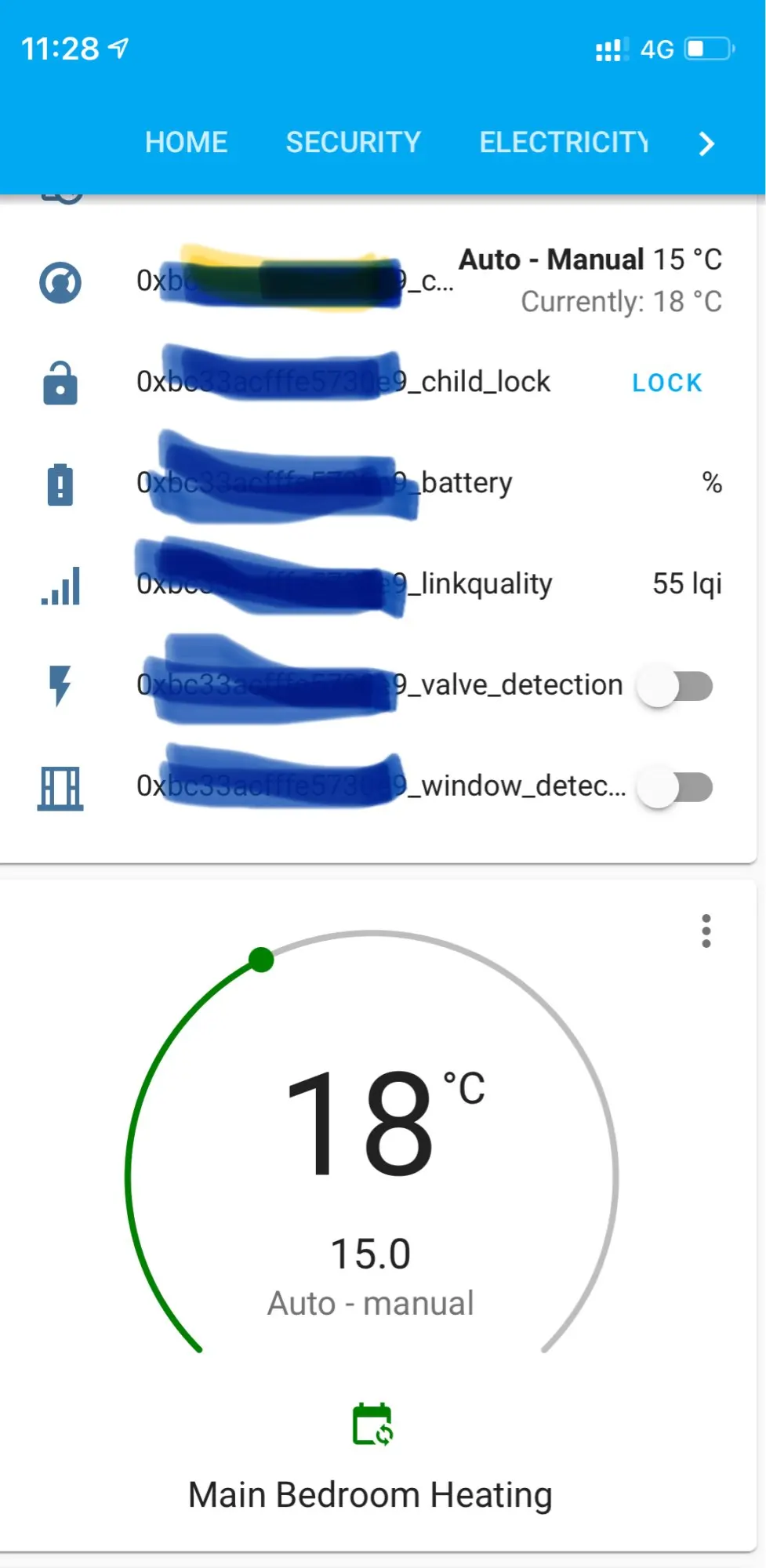 термоголовка в home assistant определялась как шторы. после нескольких сбросов на заводские настройки всё-таки определилась как термостат. из НА доступно только управление целевой температурой и блокировка. температуру врёт градуса на 4 в плюс, но есть калибровка.