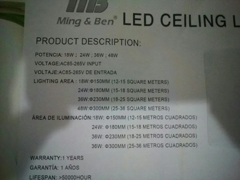 Lumen:18W:1620lm;24W:2160lm;
