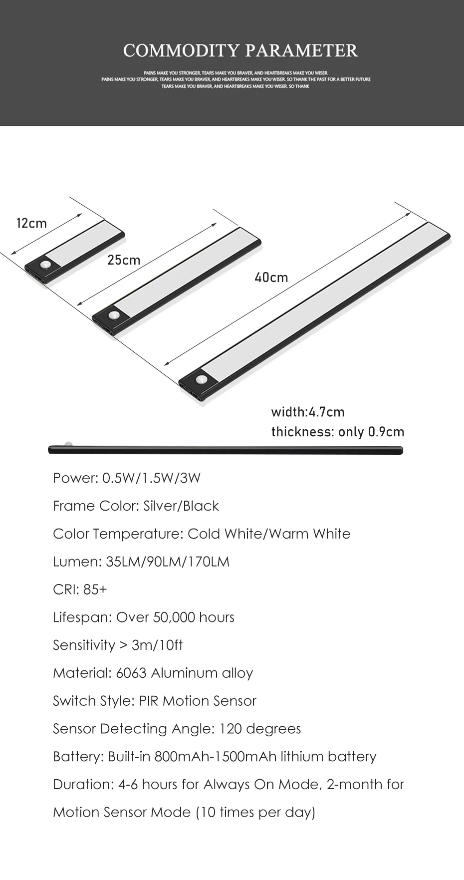 Specification: Extremely-thin PIR Movement Sensor LED Beneath Cupboard Gentle USB Rechargeable Uniform Lighting Wardrobe Cabinet Closet evening gentle