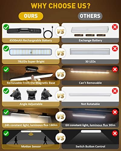 Underneath Cupboard Lights Movement Sensor, Balkwan Cordless 78 LED Counter Lamp 4500mAh USB Rechargeable Magnetic Closet Gentle, Dimmable, Adjustable Temperature / Brightness for Kitchen Wardrobe Cabinet