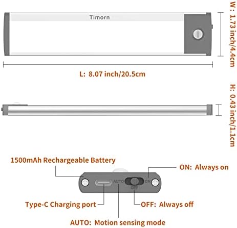 Beneath Cupboard Lights Movement Sensor: Timorn Closet Gentle Rechargeable Battery Powered Indoor & Beneath Counter LED Bars Battery Operated & Wi-fi Undercabinet Kitchen Lighting 2Pack (8in, Cool White)