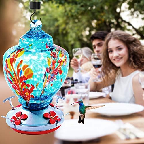 Upgraded Hummingbird Feeder for Open air , Glass Chook Feeders Straightforward to Clear&Filling,Model Chook Feeder Finest with Shade Hand Blown Glass,Leakproof 32 Ounces Hummingbird Feeders,Hanging Hook&Ant Moat