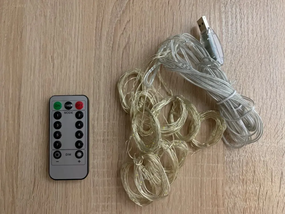 All as in the description. I was afraid to order 3×3 tons. Ceilings 2 m65cm and was afraid that they would lie on the floor, but eventually decided and did not lose… Small LEDs on a light wire when you dissolve, then they remain spiral and you can stretch them at least 3 m or leave such length as you need… Delivery is very fast, but the seller did not immediately send… Power supply included, only USB plug. Are controlled by a button on the plug or from the remote that is included. There is a mode with a timer. There is instruction in which said, that you can connect to a cat and apparently configure additional modes (but this is not accurate)… In general, very beautiful! Recommend!