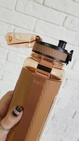 Very fast order delivery. The bottle itself is made very high quality, convenient closure and lock system from accidental opening in the bag. The appearance is generally excellent. A couple of remarks concern only the absence of a measuring scale on the bottle wall and a very narrow belt loop (good, that the bottle was ordered for the wife, maybe her palm will climb through)
