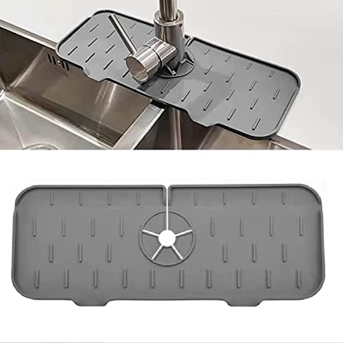 Vanfast Silicone Faucet Deal with Drip Catcher Tray Cease Water Pooling Up Behind Sink, Kitchen Faucet Sink Splash Guard, Sink Draining Mat Behind Faucet, Drip Protector Splash Drying Countertop(Gray)