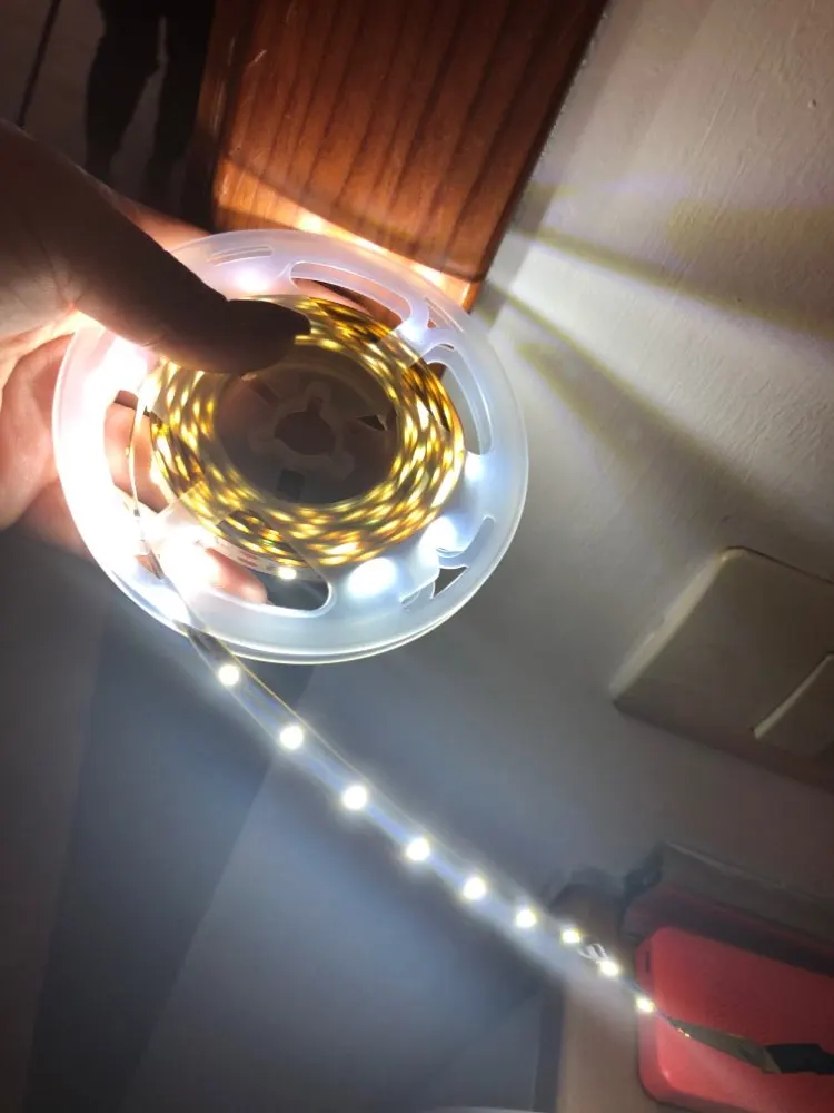 The order was sent very quickly. Ordinary tape with LED lights. There is a USB output, the usual adapter from the old phone came up! It shines bright! Very like
