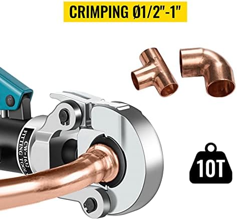 10T Crimping Energy: Suits 1/2″(12.7mm), 3/4″(19.05mm), 1″(25.4mm) copper tubes. Our hydraulic pipe crimping instrument options wonderful crimping efficiency, providing 10 Tons compressive pressure, extra labor-saving, and crimping pipes in seconds.