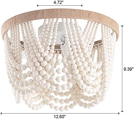 VILUXY Bohemia Wooden Beaded Flush Mount Ceiling Gentle Vintage Rustic Mini Chandelier White Ending for Bed room,Nursery Room, Lady Room, Hallway, Entryway, Passway, Eating Room, 3-Gentle