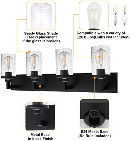πDistinctive DesignοΌThis lavatory lighting is fabricated from high-quality metallic lamp physique and seedy glass shades .It kinds a stability between fashionable industrial fashion and conventional farmhouse, and may be completely built-in into any space of your house.