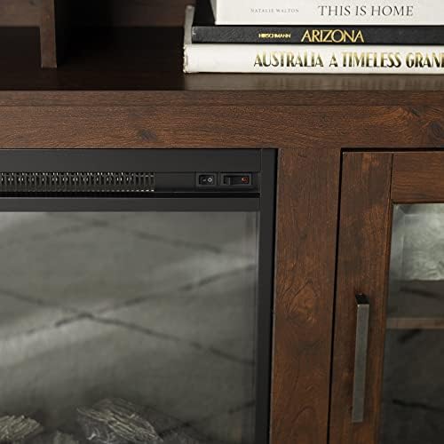 Walker Edison Glenwood Rustic Farmhouse Glass Door Highboy Hearth TV Stand for TVs as much as 65 Inches, 58 Inch, Brown