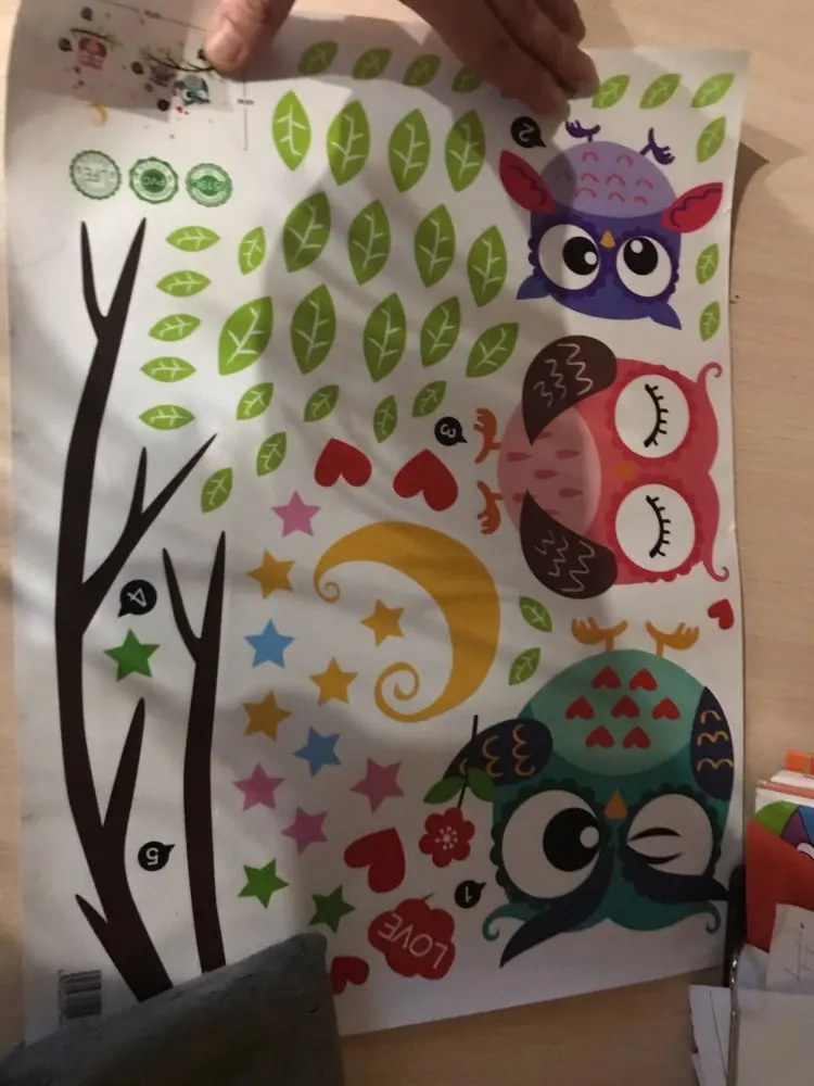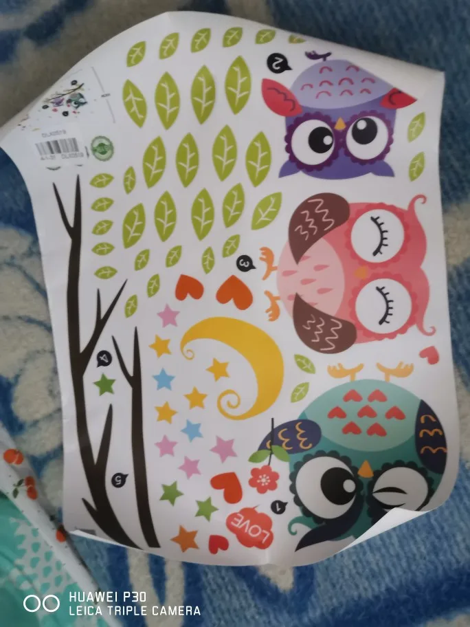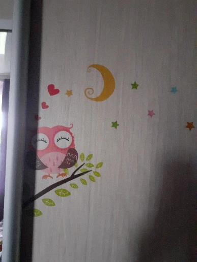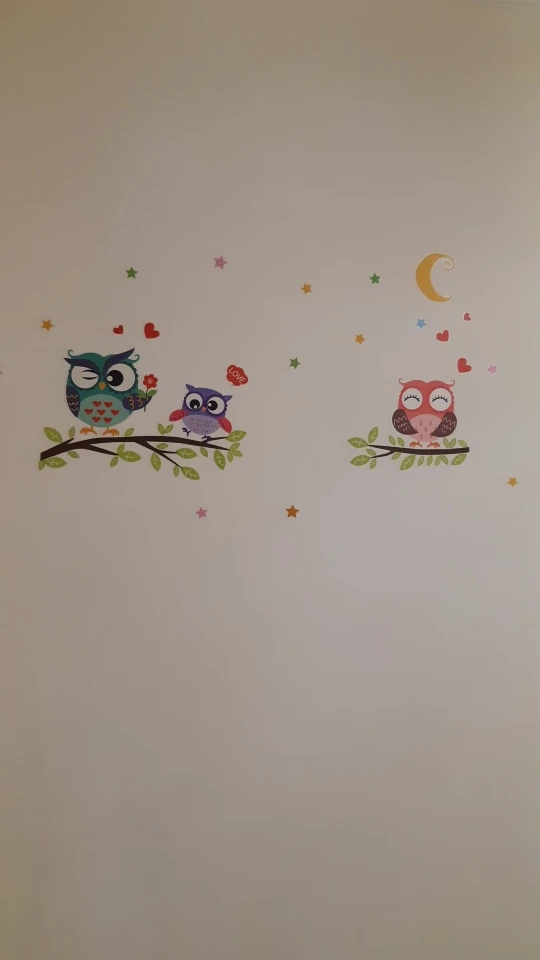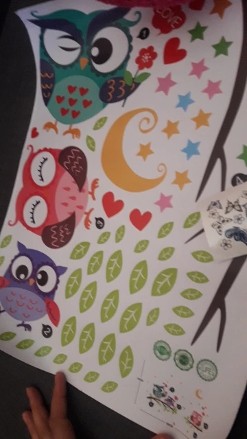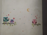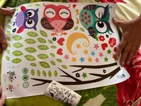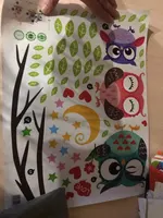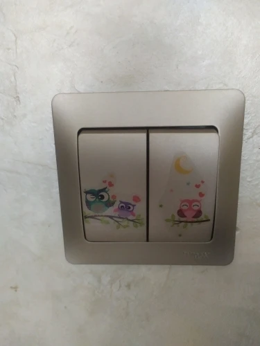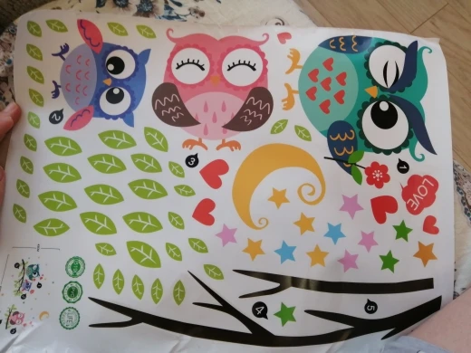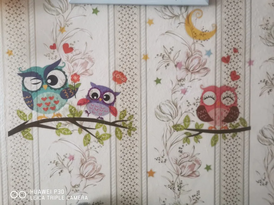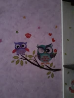 Очень яркие и симпатичные совушки. Доставка два месяца почти. Маленький образец наклеили на выключатель. Рекомендую к покупке