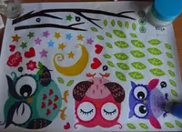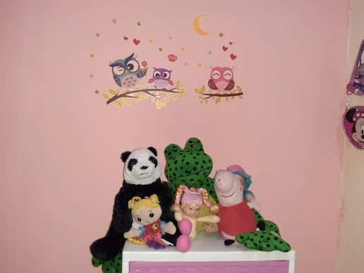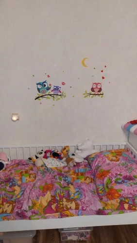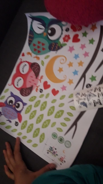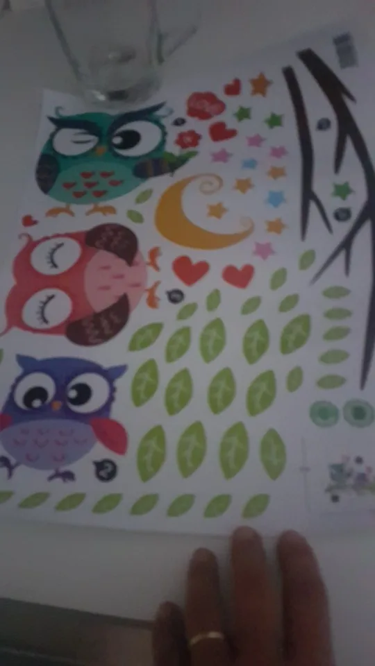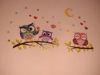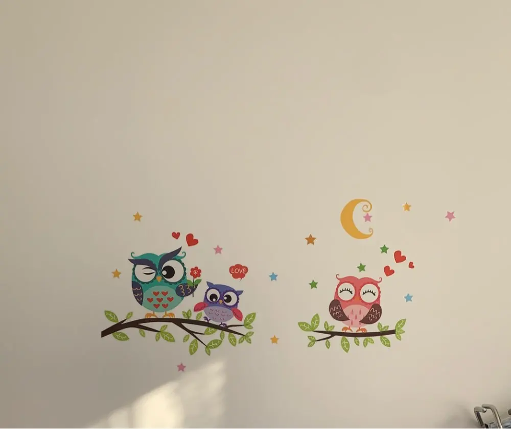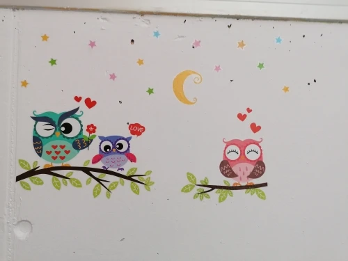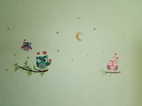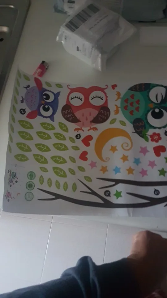 Очень яркие и симпатичные совушки. Доставка два месяца почти. Маленький образец наклеили на выключатель. Рекомендую к покупке