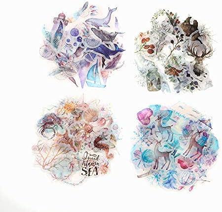 Washi Paper Stiker Set (4 Pack, 160 Items) Inexperienced Pot Plant Herb Specimen Purple Floral Bauhinia Flower Animal Adhesive Stationery Stickers Ornamental Label for Scrapbooking Diary Artwork Undertaking Album (C)